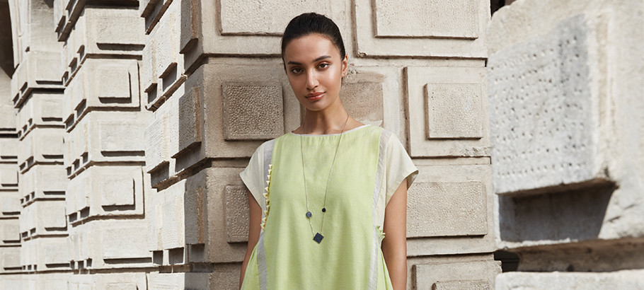 Walk down the many paths of summer with this joyous tribute to the geometric cube. A burst of fresh colours enlivens the spliced and layered designs of Cubism. Quirky silhouettes and colours fill this uber-cool collection with happy surprises. A dash of mint and lime make it the ideal daywear, whether at a Sunday brunch or a weekday date.
