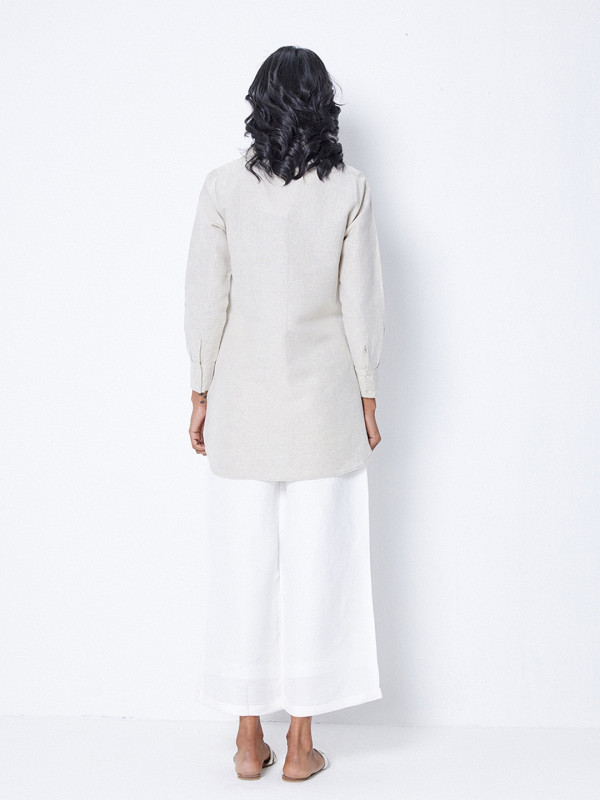 The notch collar buttondown top is a stylish and versatile piece that can be dressed up or down. It features a unique notch collar design that adds a touch of sophistication to any outfit.