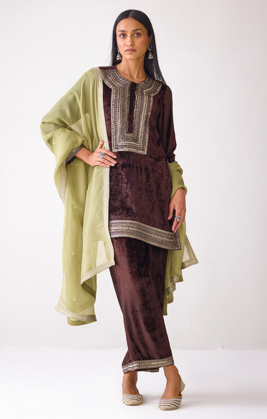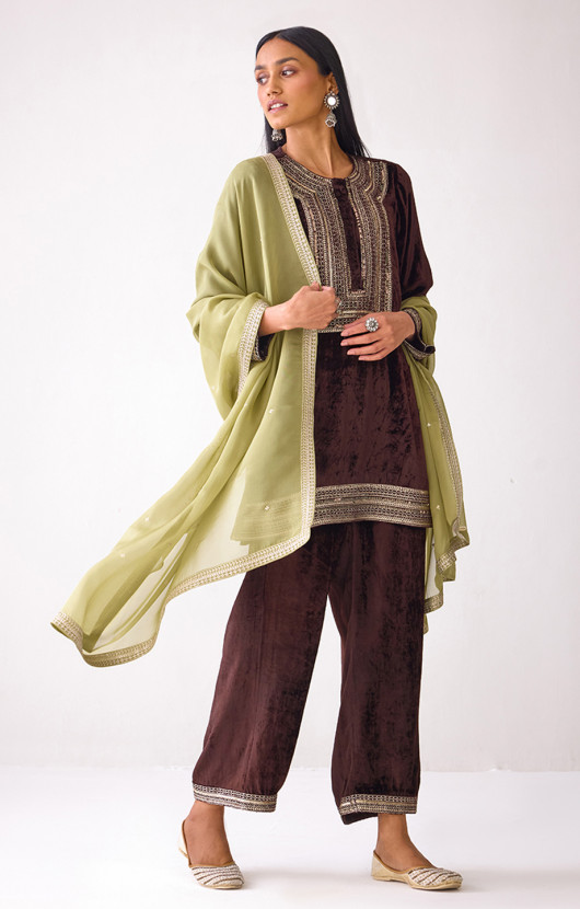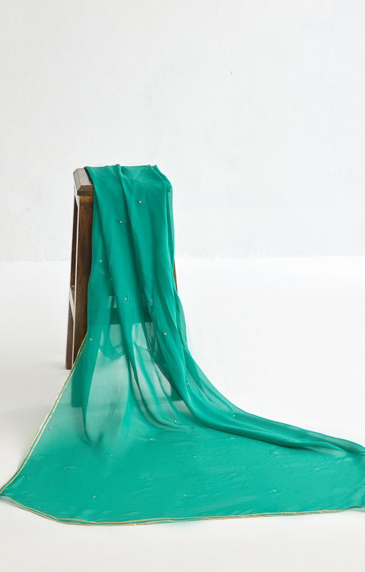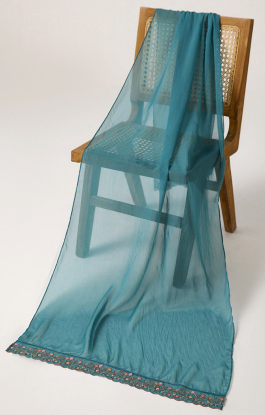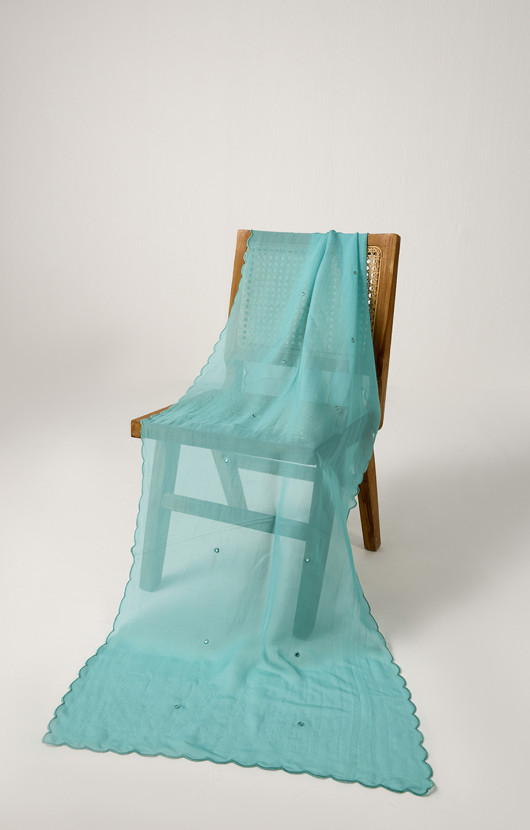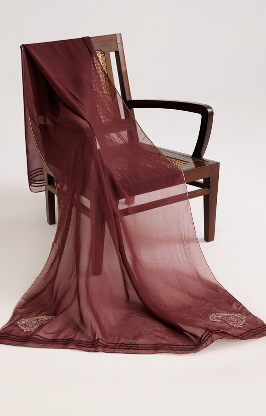 At Ancestry, organza dupattas and scarves are perhaps among the most featured drapes on our website. And we make it a point to cater to all fashion tastes. So, if you want to keep your drapes subtle, you may like pieces such as our Aqua Drape that comes in a bright blue viscose organza fabric complete with delicate floral embroidery around the edges. Whereas, if you're all about a bit more bling, you might fancy festive drapes like our Innayat drape. This black-coloured piece has earth-toned paisley embroidery round the corners, adding a dash of oomph to your festive evening look.