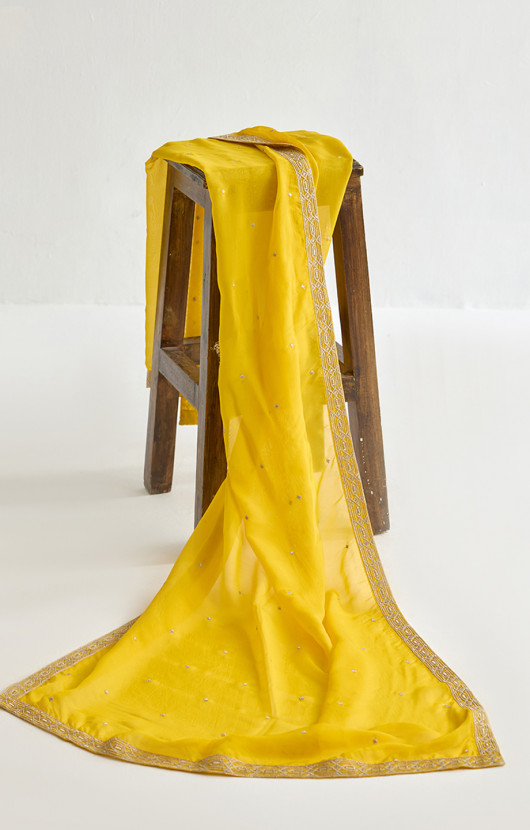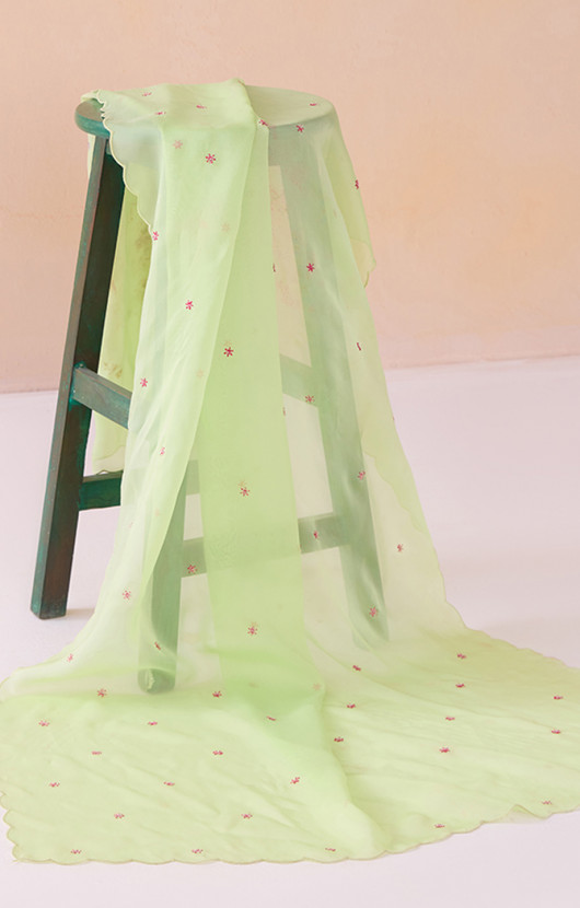 If you must buy one trendy dupatta online to add to your wardrobe, it should be an organza drape. These drapes are soft and lightweight, meaning they can lift a flat outfit and add some spunk to it in no time. What’s more, these fabrics also have a delicate sheen to them. Hence, they also add a touch of glam to an otherwise plain outfit.