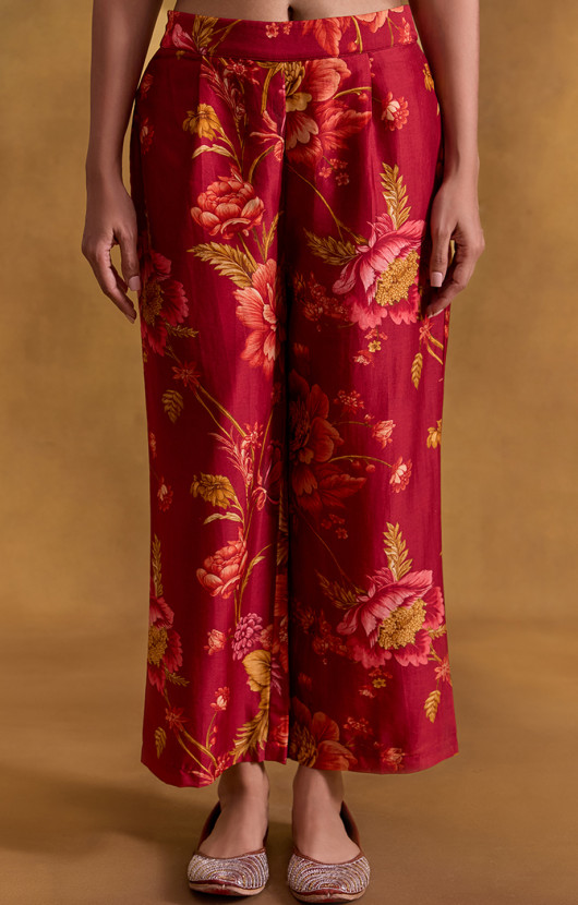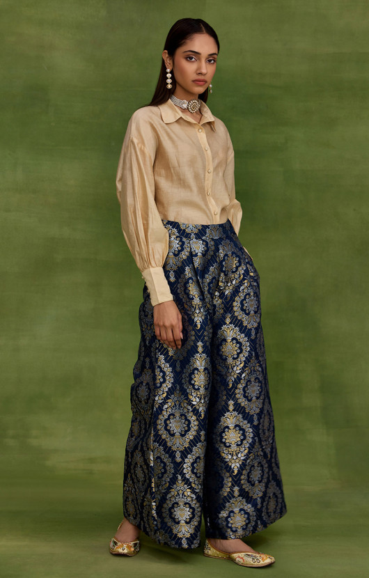Ans. Trousers for women come in various styles, including straight pants, dhoti pants, wide-leg pants, flared trousers, cropped pants, palazzo pants, linen cotton embroidered pants, zardozi embroidered pants, cigarette pants, shararas, etc. Explore the vast collection of trousers for women at the Ancestry store.