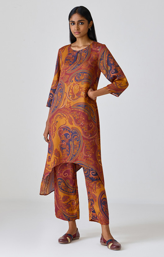 Be it fun floral, classic stripes, or cool checks, prints never go out of style! Give your solid kurta a twist with a pair of printed pants. For instance, you can pair our brown paisley trousers with a white straight kurta and complete the look with a pair of open flats for the chic office look.
