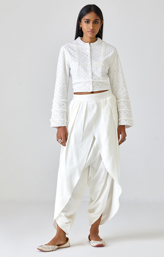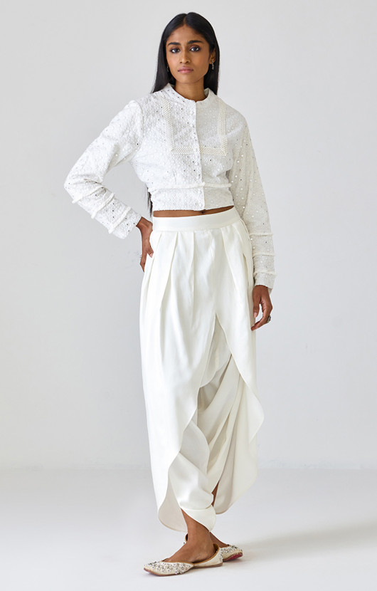 Looking for something light and breezy for the next festive occasion? Make a fashion statement and feel at ease in a pair of linen dhoti pants. Casual and comfortable, they add a touch of grace and sophistication to your outfit. For instance, sport our white dhoti pants with a long heavy-work kurta at a sangeet ceremony. Or printed dhoti pants with a short kurta for a relaxed day with your family.