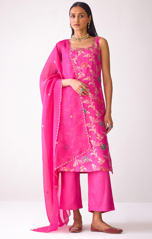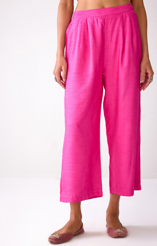 Fuchsia Pink Kaashi Straight Fit Trousrers