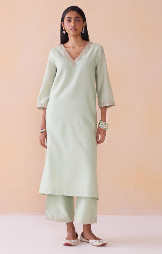 At Ancestry, we bring you our line of straight pants suitable for all tastes and aesthetics. Designed for comfort, you can choose from a variety of fabrics – cotton, Chanderi, linen, silk, and more. Pick our black trousers for an effortless look when paired with a solid top or our bandhani pants for a graceful appeal when styled with a long kurta.