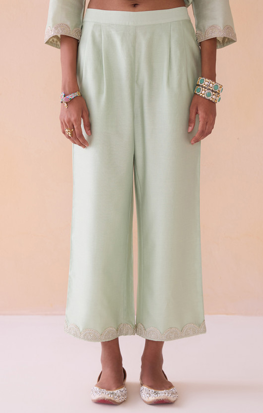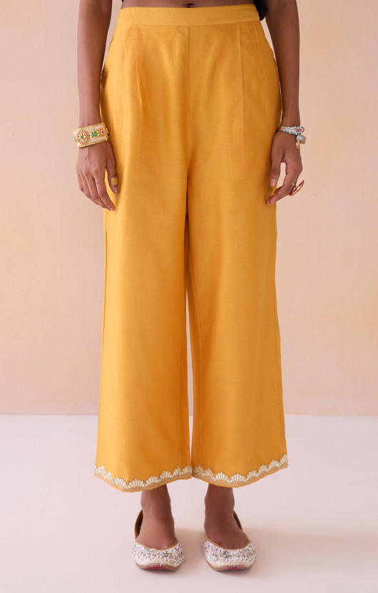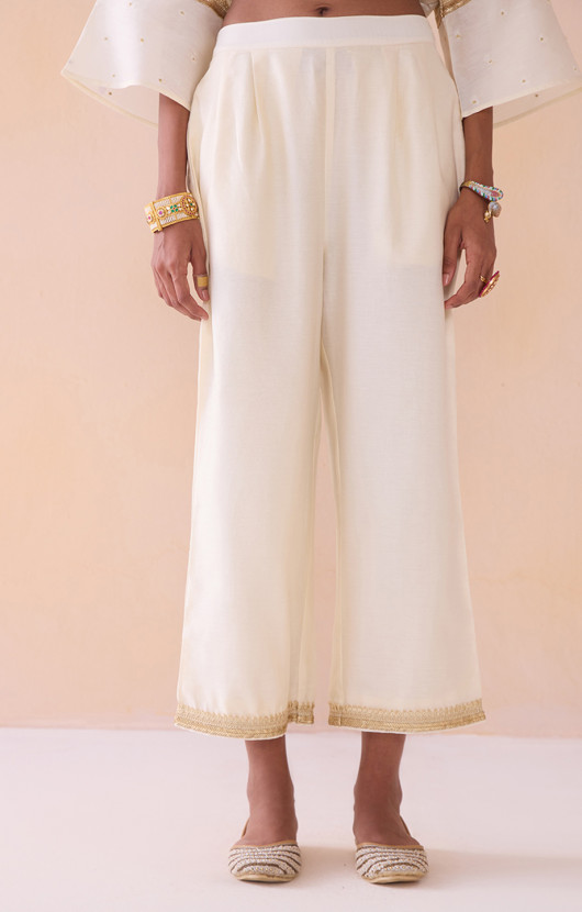 Ans. Trousers for women come in various styles, including straight pants, dhoti pants, wide-leg pants, flared trousers, cropped pants, palazzo pants, linen cotton embroidered pants, zardozi embroidered pants, cigarette pants, shararas, etc. Explore the vast collection of trousers for women at the Ancestry store.