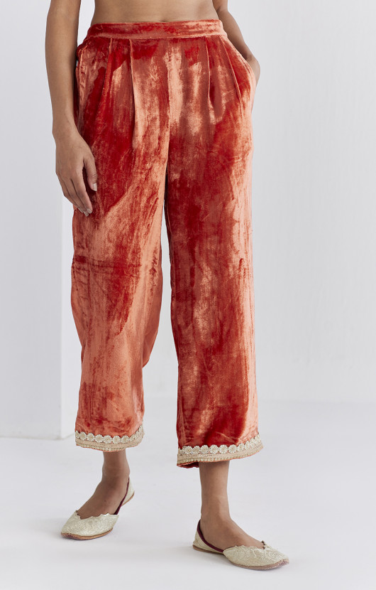 Nobody said that velvet is limited to glamorous kurtas and tops when you can level up your style quotient with a pair of stunning velvet pants. Velvet pants are the new in, suitable for traditional and western wear alike. Have a family wedding to attend? Flaunt our maroon velvet pants with bottom embroidery along with a matching velvet kurta for a monochrome outfit. Finish this look with a pair of Kundan earrings and embellished juttis.