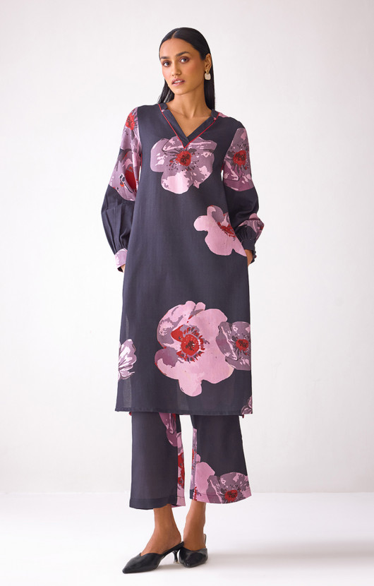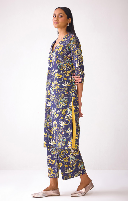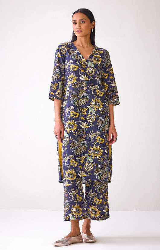 Navy Blue Allover Floral Printed Kurta