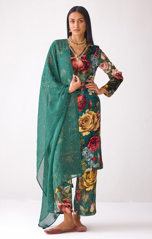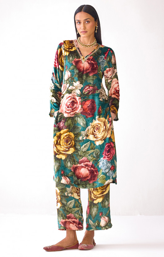 Masakkali Floral Printed Velvet Kurta