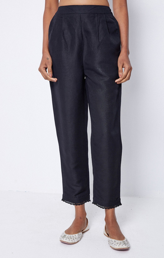 Cigarette Trousers With Lace Detailing