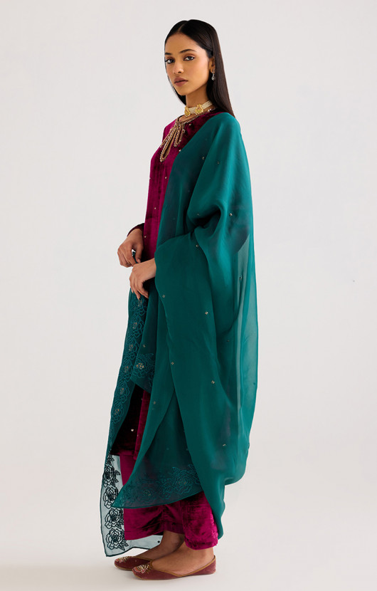 Masakkali Floral Printed Velvet Kurta