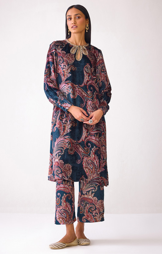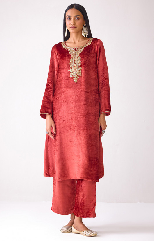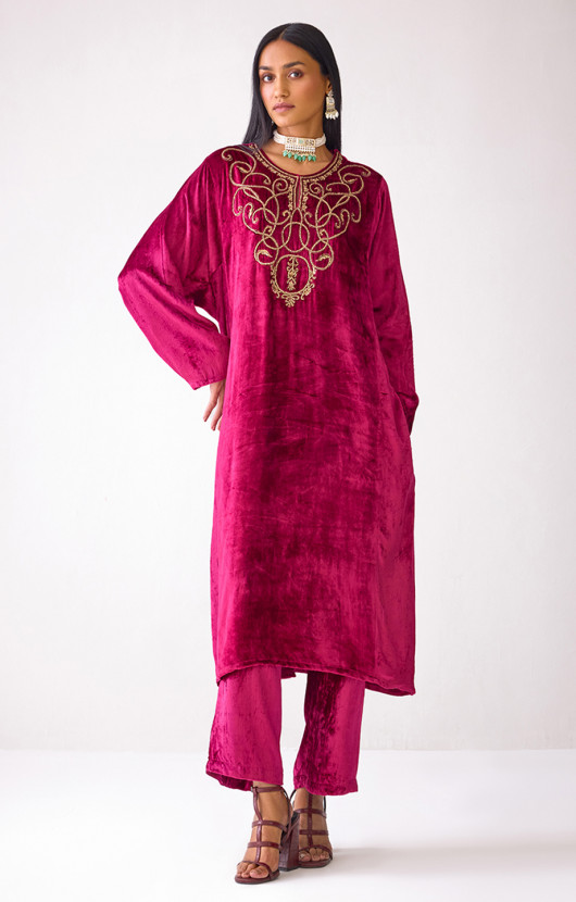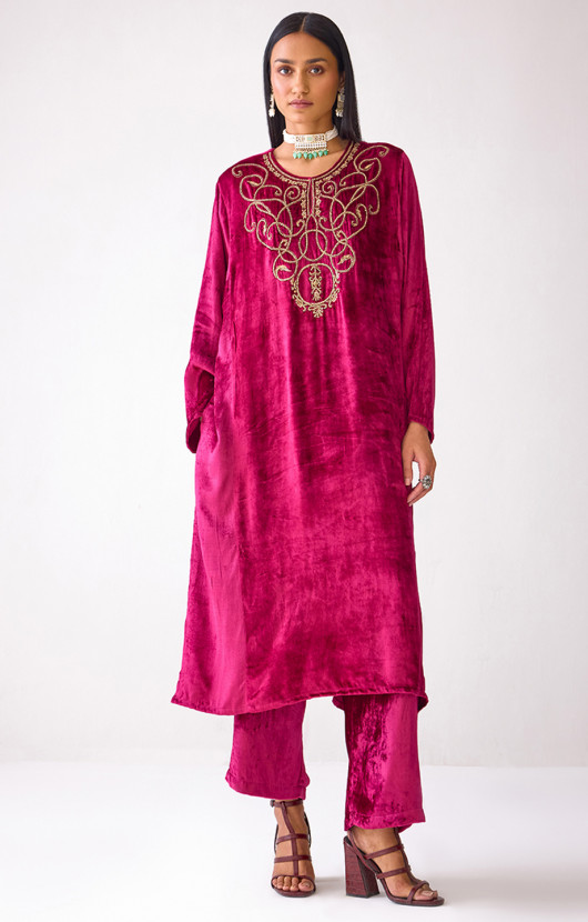 Masakkali Fuchsia Pink Velvet Kurta