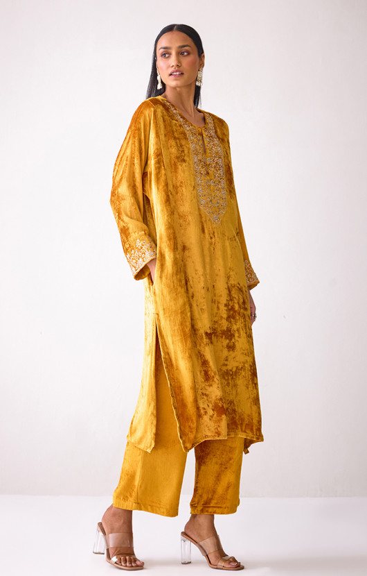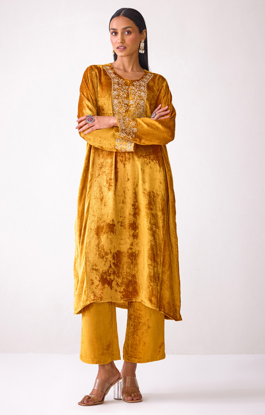 Masakkali Mustard Velvet Kurta