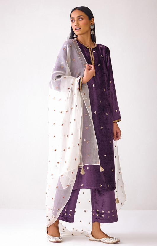 Masakkali Purple Velvet Straight-Fit Trousers